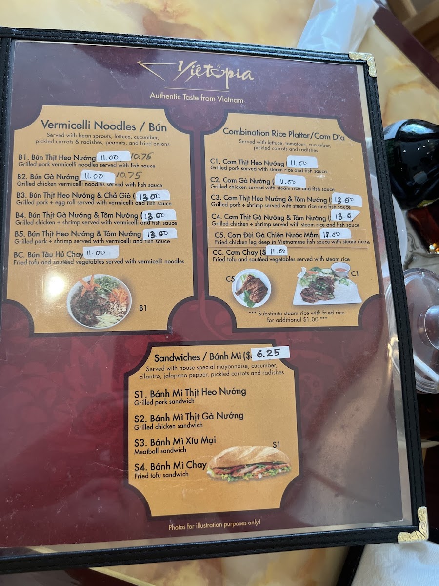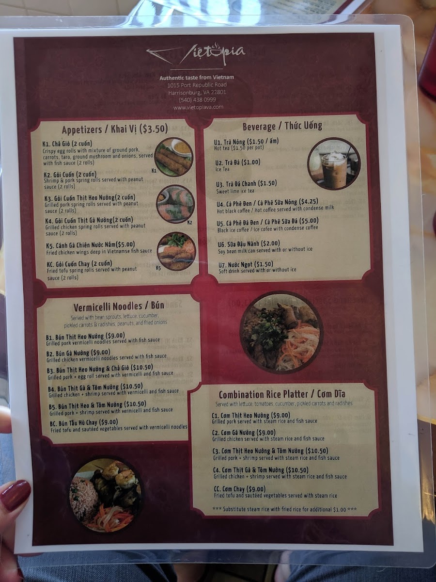Vietopia in Harrisonburg offers a vibrant menu that celebrates authentic Vietnamese flavors with a modern twist. Their signature dishes shine with fresh ingredients and balanced seasoning. Highlights include the Stirfried Vietnamese Noodles (Phở Xào), a colorful medley of wide rice noodles, vegetables, and your choice of chicken or beef, delivering satisfying textures and rich umami. The Vietnamese Shaking Beef Rice Platter (Bò Lúc Lắc) presents tender cubed beef sautéed with garlic and bell peppers, paired perfectly with steamed rice and crisp vegetables.